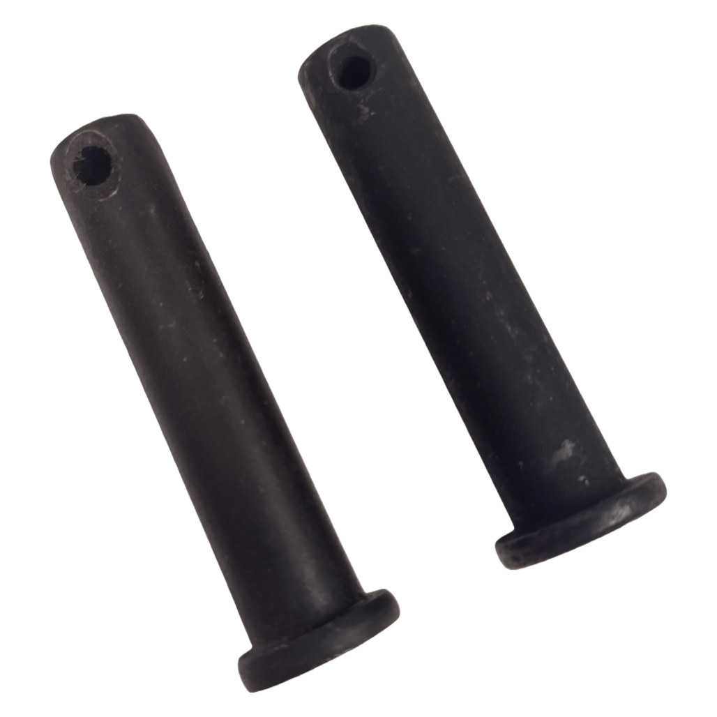 A pair of tiller tine pins to suit the TP700 tiller rotavator. These pins are made of hardened steel.