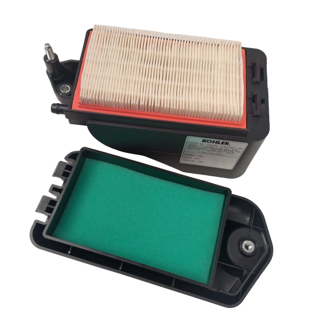 A genuine replacement Kohler air filter box, including a replacement air filter and pre-clean filter for the 22" zero turn lawnmower, only from Titan Pro.